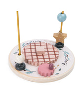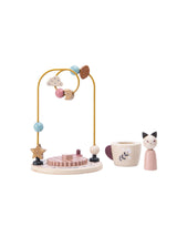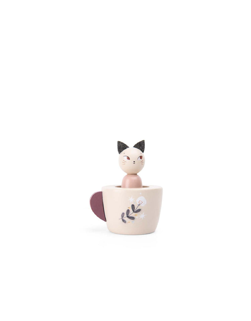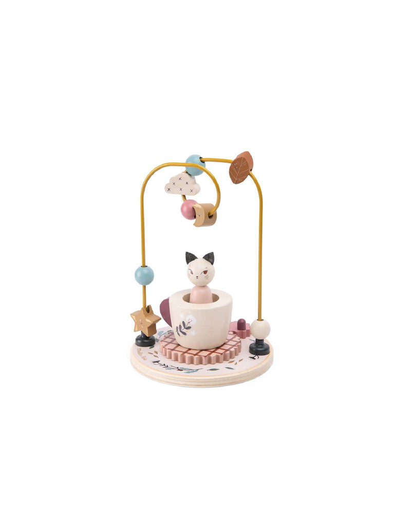 Jeu de manipulation en bois illustré de la collection Après la pluie. Regardez la tasse tourner et observez son personnage en actionnant le jeu d'engrenage. Le jeu comprend également un circuit de perles.