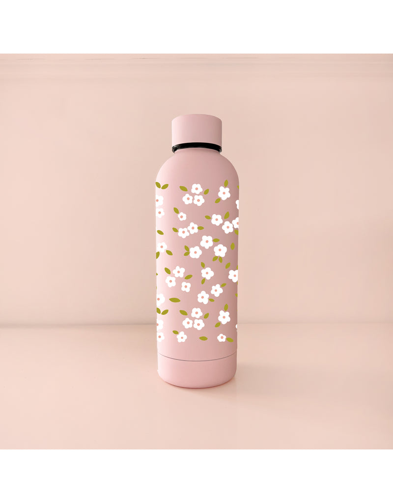 Emportez vos boissons préférées partout avec vous grâce à cette élégante bouteille rose pâle avec des motifs de fleurs!
