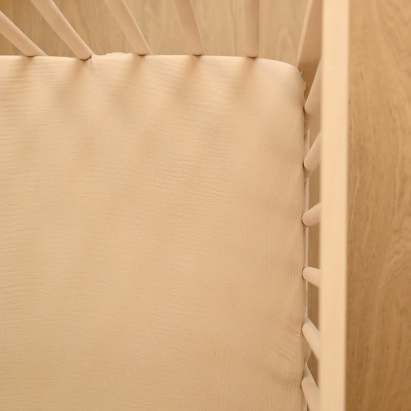Créez un cocon de douceur pour les nuits de bébé avec ce drap-housse en mousseline de coton biologique 100%.