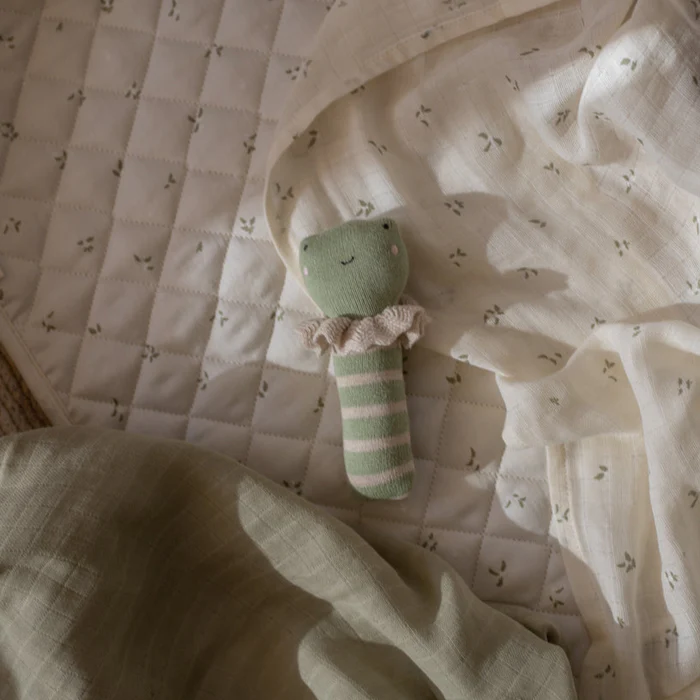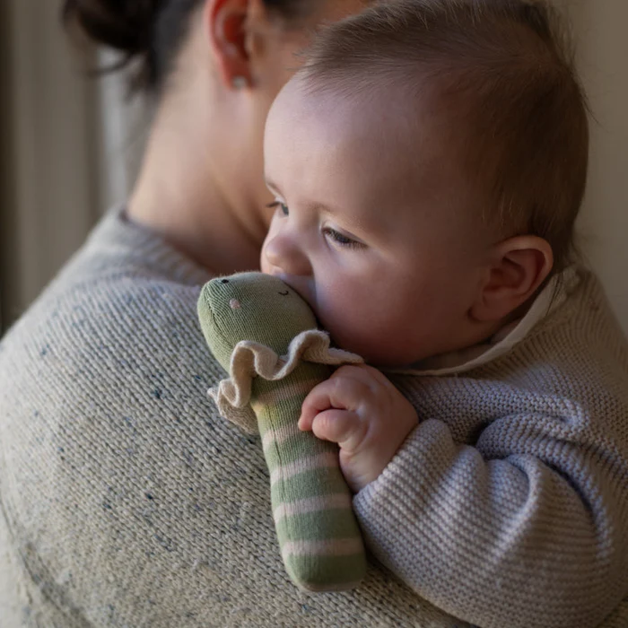 Confectionné en coton biologique avec des teintures douces, ce hochet est aussi respectueux de la peau de bébé que de la planète.