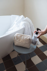 Organisez vos essentiels avec style grâce à cette magnifique pochette matelassée de Dans le sac, un accessoire aussi élégant que pratique, fabriqué en coton biologique.