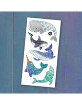 Ajoutez un peu de couleurs au quotidien de vos enfants avec ces mignons tatouages temporaires de baleines aux couleurs douces.