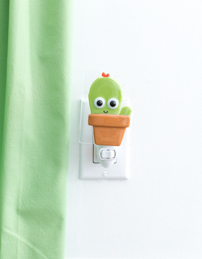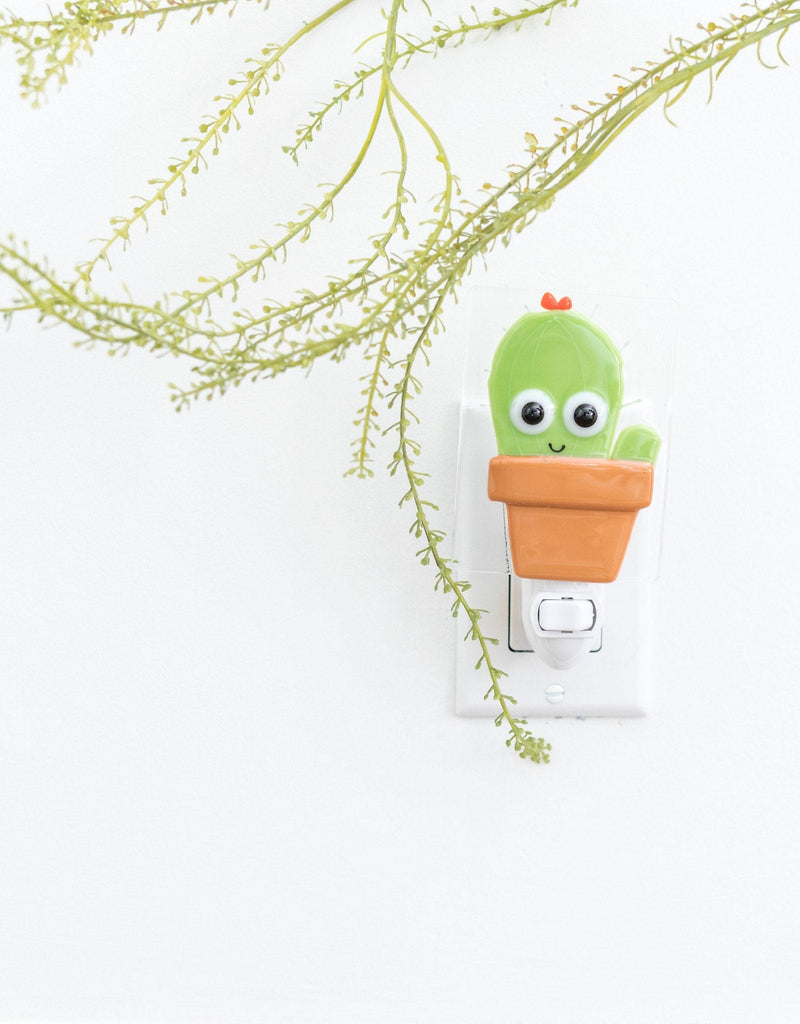 Voici l'adorable veilleuse Gus le cactus! Avec son regard affectueux, il amènera une ambiance sereine et rassurante à la chambre de votre mini.